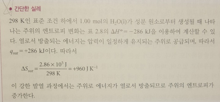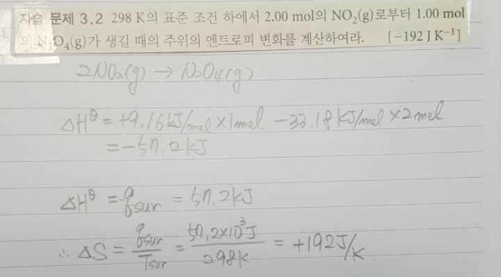 이 문제에서는 생성 엔탈피가 음의 값으로 방출되는 에너지가 주위로 열의형태로 공급되니 q_sur는 양의값으로 바꿨는데...