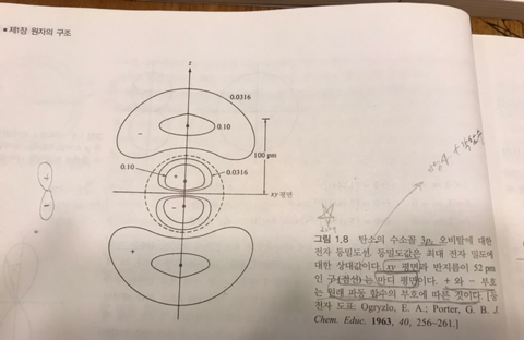 이 그림의 설명에서 +와 - 부호는 원래 파동함수의 부호에 따른 것이라는 데요. 제가 왼쪽에 그린 아령 모양이 원래 파동함수라고 생각하고 그렸는데 맞나요? ㅠ