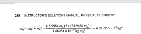 작성자큐빅스 작성시간 19.05.10 분자에 있는 [(18.9984 mu)-1 + (34.9688 mu)-1] 이 부분이 분자량의 환산질량을 구하는 식이고