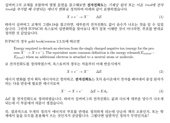 여러분은 전자친화도의 부호를 어찌 배우셨나요?