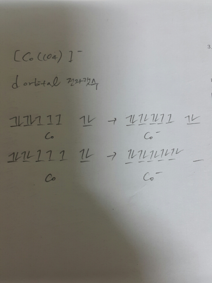아래 코발트 착물 d 오비탈 전자갯수 8개인가요?