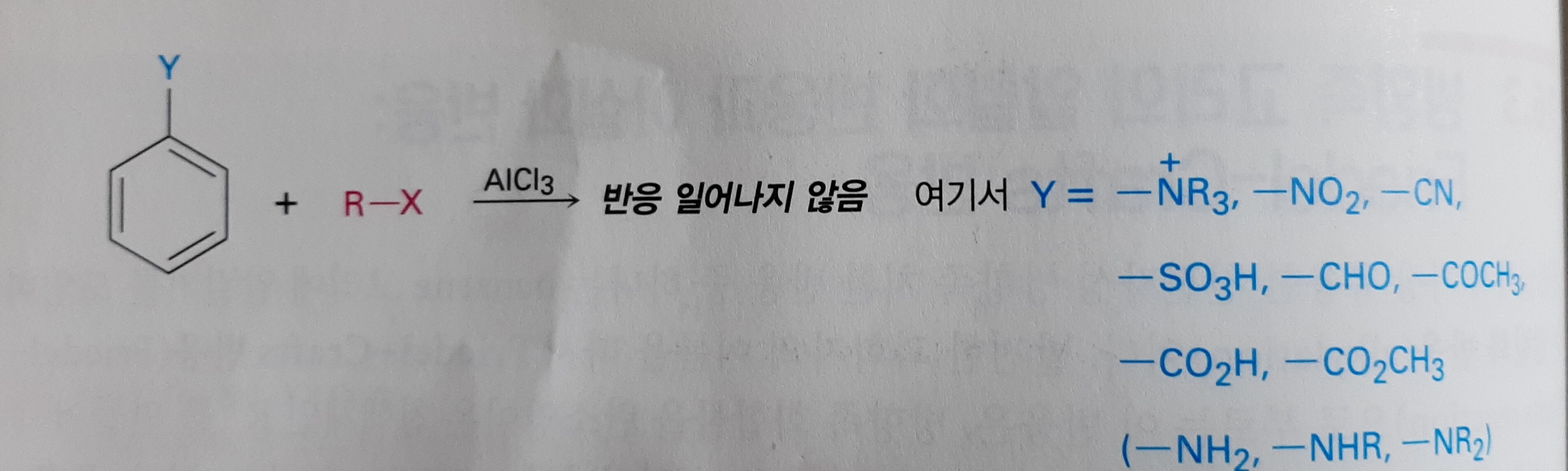 벤젠에 전자끄는기가 존재하면 프레딜크래프트 반응이 안일어난다고 아는데 왜 여기서는 일어나는건가요?