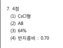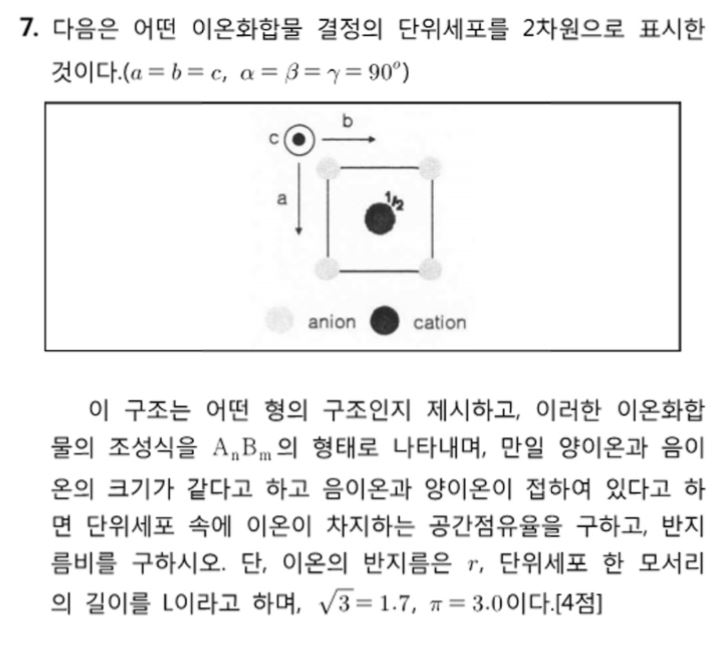 김지현 모고 풀이 부탁드려요~ (무기 결정성고체) 작성자2021두둥탁|작성시간20.10.04|조회수359 목록 댓글 2 글자크기 작게가 글자크기 크게가 답 이 문제 풀이 부탁드립니다! 다른 것보다 저게 CsCl형인걸 어떻게 아는지 모르겠어요 다음검색 현재 게시글 추가 기능 열기 북마크 공유하기 신고 센터로 신고 댓글 댓글 2 댓글쓰기 답글쓰기 댓글 리스트 작성자Hyechem_t | 작성시간 20.10.04 CsCl의 단면이 보이는 경우라 CsCl형이라고 생각했어요 이미지 확대 작성자Hyechem_t | 작성시간 20.10.04 반지름비를 양이온의 반지름에 대한 음이온의 반지름이라고 알고 있는데 위 문제에서 양이온이랑 음이온의 반지름이 같다고 가정했는데 어떻게 0.7이 나오는지는 모르겠네요ㅠㅠ 댓글 전체보기