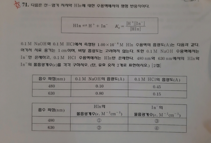 주어진 조건에서 등흡광점을 묻는건지 다른 조건이 있는건지 파악이 안됩니다 ㅠㅠ 필요한 개념이나 계산 과정이 있을까요???