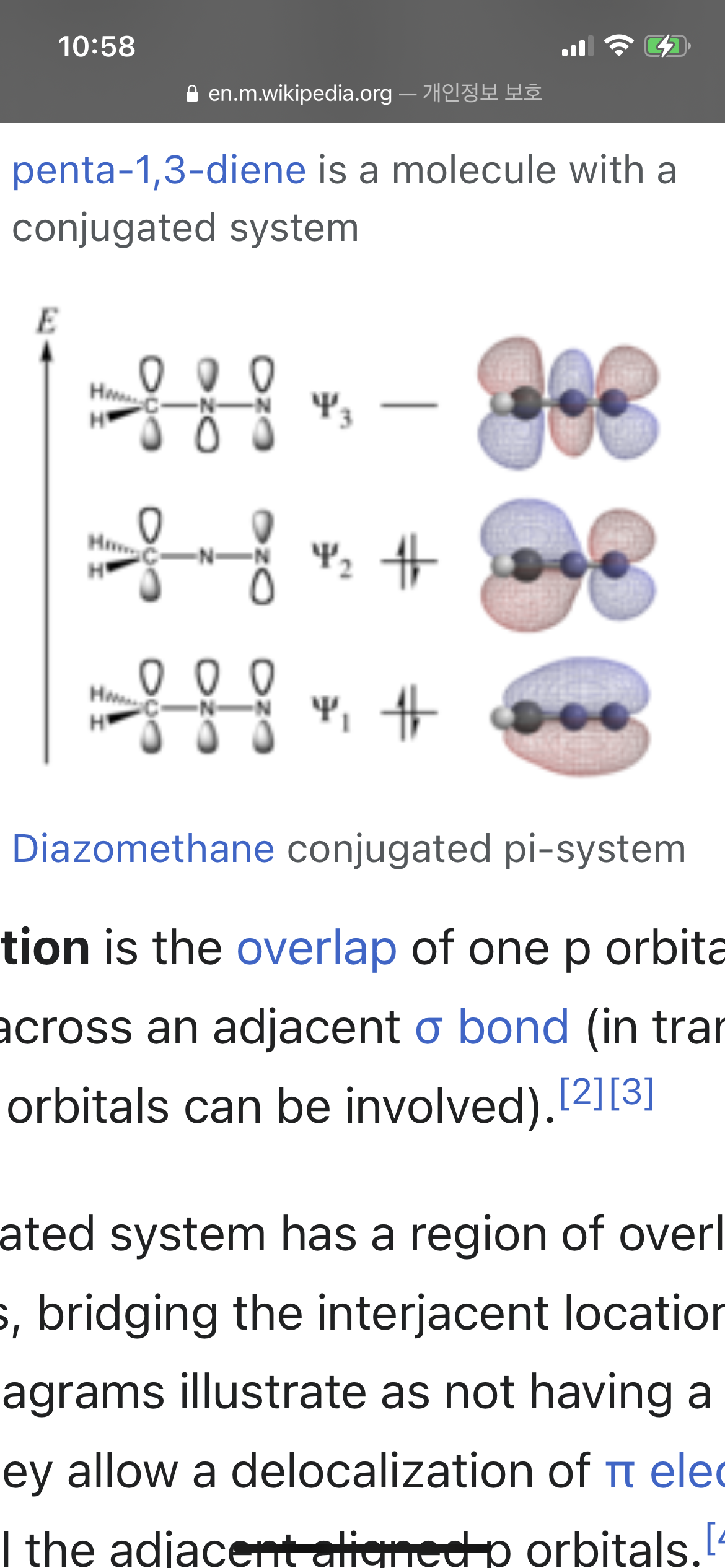 C-N-N에서 반결합성이랑 비결합성도 컨쥬게이트 시스템이라고 해놨길래 궁금합니다! 컨쥬게이션이 3개 이상의 원자가 전자를 비편재화하는 걸로 알고 있는데 반결합성이랑 비결합성도 포함이 되는지요??