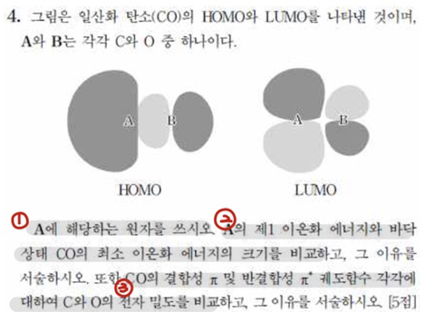 CO의 MO를 그려보았는데 ‘분자의 에너지 준위는 산소와 더 가까우므로 산소에 전자 밀도가 치우쳐있다.’ 라는 설명이 왜 틀린지 잘 모르겠습니다 ..이미지 확대