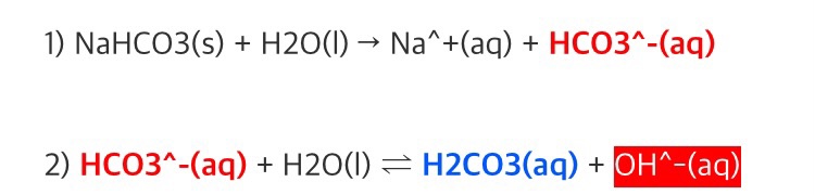 2. HCO3-역시 양쪽성 물질이라서 물에 수소이온을 내놓기도하고 탄산수소 나트륨에서 이온화하여(물에 녹아) 가수분해하면 OH-이온이 되기도합니다. 양쪽성 물질 개념(화학1,2 수준)을 말씀해주셔야해요 ㅠㅠ