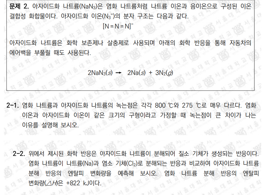 염화 나트륨과 아자이드화 나트륨은 이온결합 화합물로, 두 녹는점을 비교했습니다.