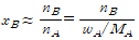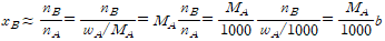 묽은 용액의 용질B 몰분율을 몰랄농도로 변환시킬 때 (A는 용매)