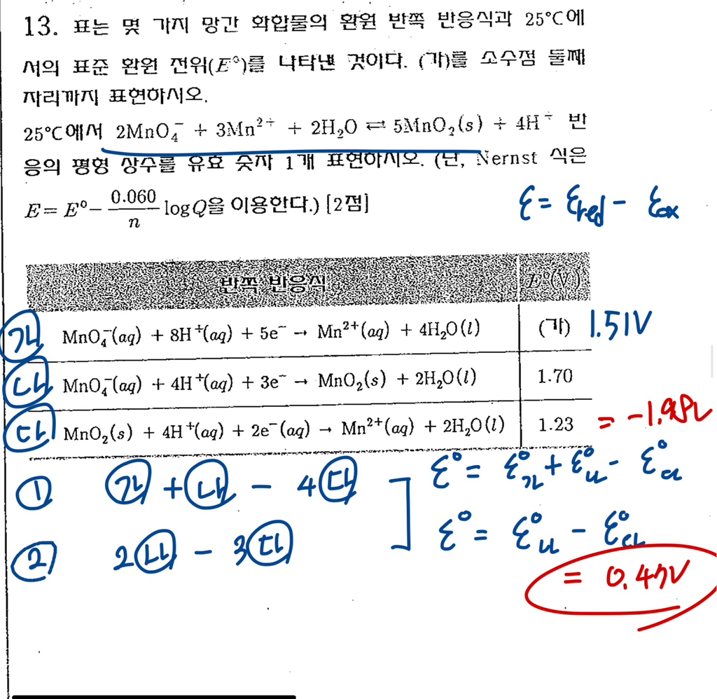 답에는 0.47로 나오던데... 왜 1번과 같은 방법은 안되능걸까요 ? 둘다 반응식은 맞는데 ㅜㅜ