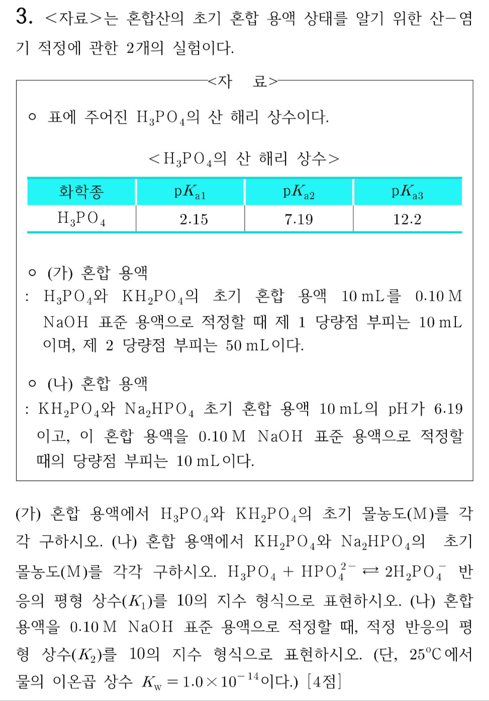 답댓글 작성자아아조앙 작성시간 24.09.21 서진쌤 앗 그렇군요! 제가 알기론 ㅂㅊ쌤 강의 내용으로는 평형상수를 적어줄때 제가 쓴것 처럼 일반식화해서 풀던것이 기억나서 풀어보았습니다. 문제에서 강염기인 oh- 의 kb는 1으로 파악하구요. 다른 썜들 의견도 한번 기다려보면 좋을것 같아요!
