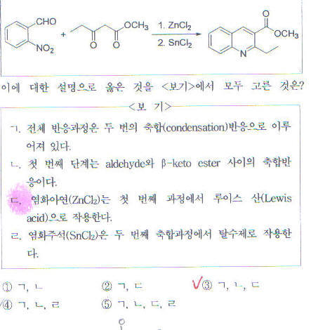근데....3번째 질문 문제(축합 2번 하는거..) ㄹ에서 SnCl2 는 환원제 역할 맞나요??
