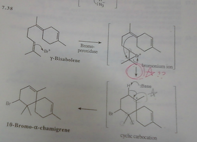 1. 브로민이 첨가되어 삼각고리 형성은 이해가 되는데.........사진에 별표친 부분에서 모양이 어떻게 저렇게 바뀌는지 저는 도통 저렇게 못하겠네요.......자세한 과정 좀 그려서 알려주시면 정말 감사하겠습니다. 고리 아니었다가 고리되고 하는 것 기본적인 것 이상은 아직 어렵네요.ㅠㅠ