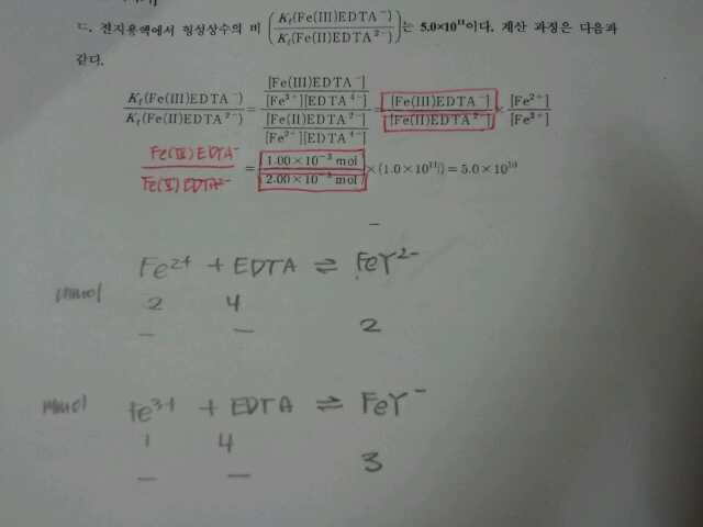 작성자키위설탕 작성시간 12.11.05 학원강사의 풀이가 맞을듯 하네요. 학원강사는 처음 전지용액의 농도를 사용한 것이아니라. EDTA와 착물을 이룬