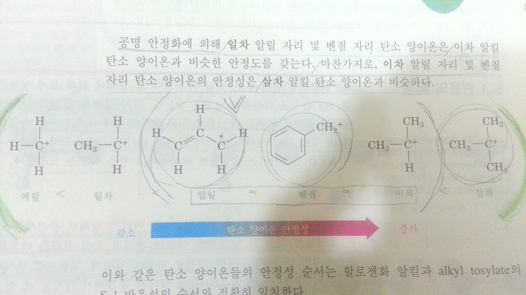 탄소양이온의 안정성 비교에서는..(맥머리 6판 372쪽)