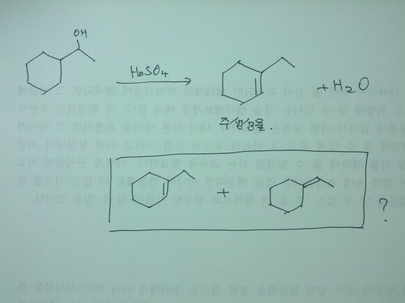 알콜의 탈수반응에의해서 알켄이 생성되는 반응인데요