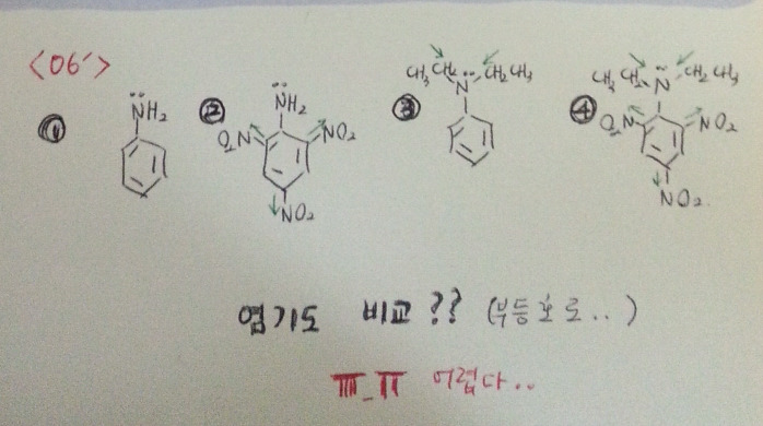 06년 9번.. 아민의 염기도 비교 문제인데요ㅠㅜ