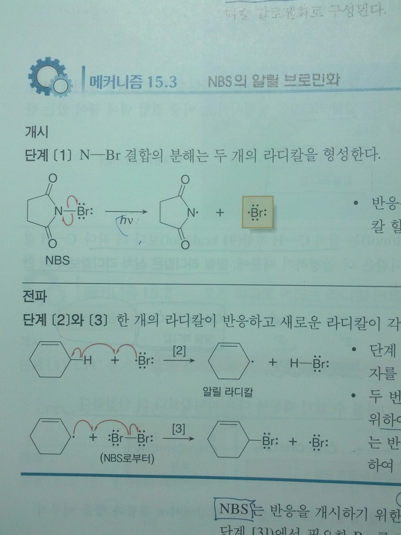 그래서 NBS 알릴브로민화에서 Br라디칼이 알릴자리 수소를 떼서 라디칼 만들구요.
