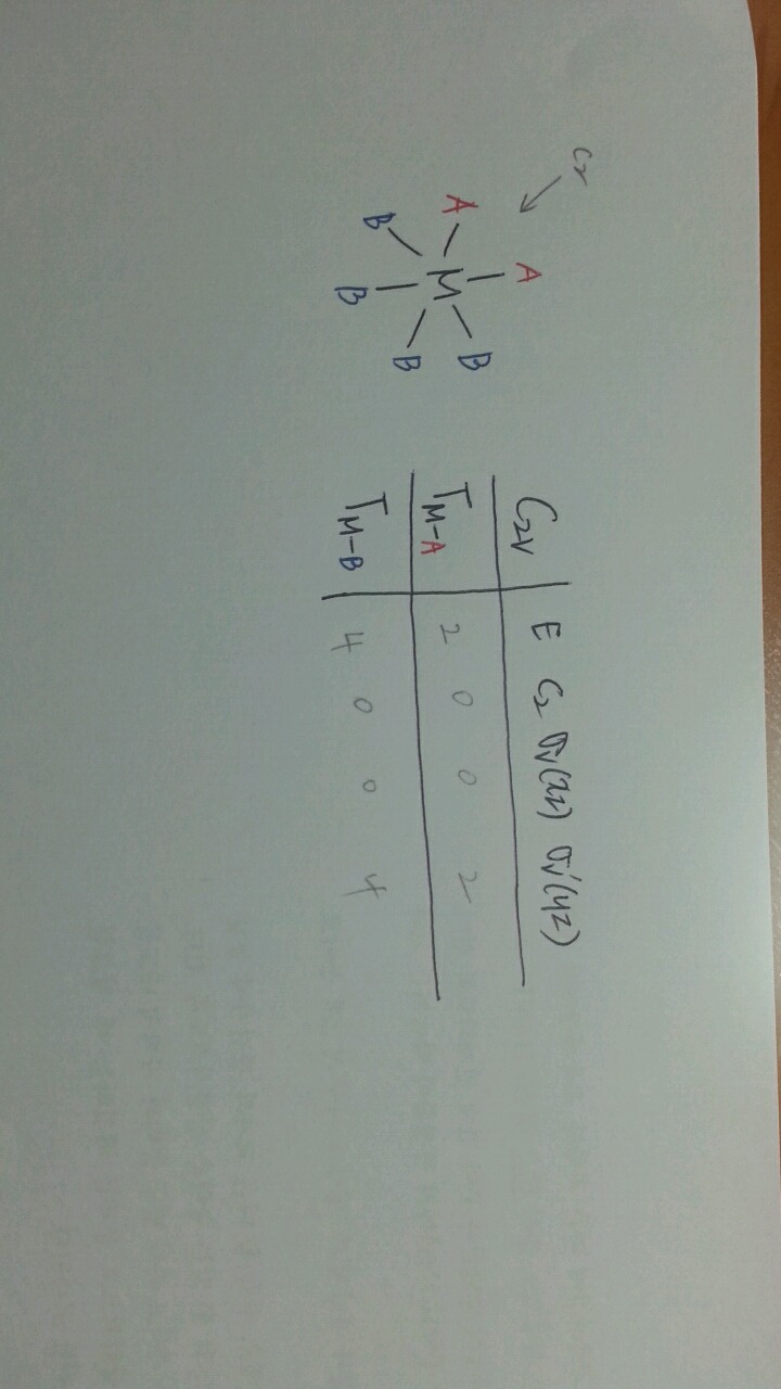 cis착물에서 C2v에 대한 가약표현이 뭔가요..?