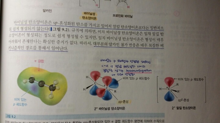 아래 사진에 제가 적어 놓은 부분에서 비어있는 p 오비탈과 하이퍼컨쥬게이션 하는 인접 C-H 시그마 궤도함수는 어느 쪽 C-H결합인가요?