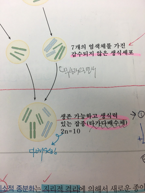 이게 타가다배수성에 의한 종분화되어 타가다배수체의 염색체를 나타낸건데요!