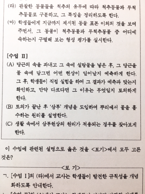 • 작성자준비하는사람의여유 | 작성시간 19.07.19 저도 경험귀추 같습니다.. 헷갈린다면 가설-연역적 순환학습과 혼동이 될 수 있다고 생각하지만, 가설-연역적 순환학습이 되려면 문장에 학생들이 예측한다. 이를 바탕으로 가장 합리적이고 그럴듯한 가설을 생성한다. 이 가설을 검증하기 위해 실험을 계획해서 수행한다. 실험 결과가 가설과 일치하는지 검증한다. 와 같은 이야기가 있었어야 될 것 같네요.. 따라서 단순히 예측하고 경험을 통해 설명했으므로 경험-귀추...!