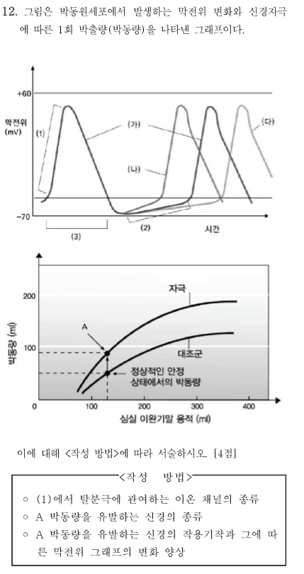 저는 세번째 조건에서 신경의 작용기작과 막전위 그래프(가)~(다)의 변화 양상을 쓰라고 해서
