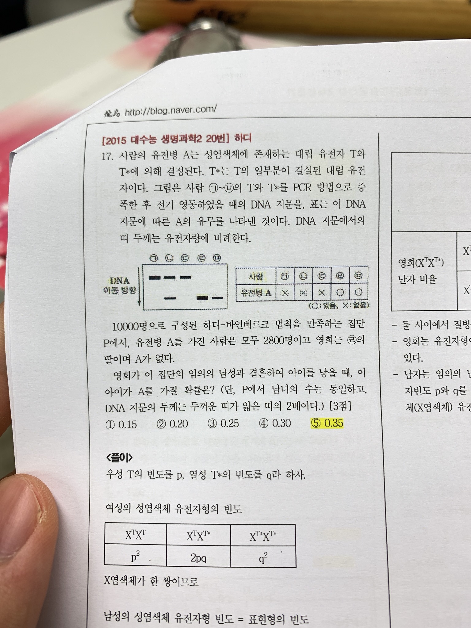 q의 제곱이 여성에서 유전병 환자의 유전자형 빈도이고 q는 남성의 유전병 환자의 유전자형 빈도를 뜻하는데 왜 안되는거죠..?