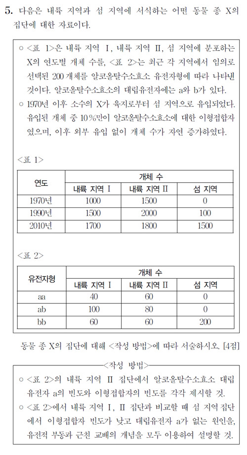 근데 처음 이주할때의 집단에서 aa동형접합은 왜 고려하지 않는건가요? 너무 빙빙꼬아서 보는걸까요 ㅠㅠ? 10퍼센트만 이형접합이랬지 나머지가 다 bb 라고 하질 않았는데..