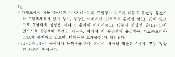 그래서 위 문제에서는 X염색체 모계영향유전을 배제할 수 있습니다. -