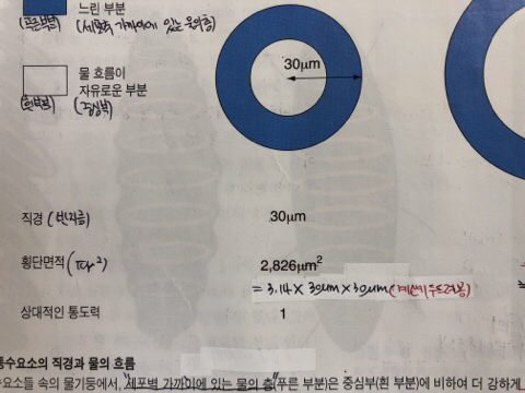 반지름이 30마이크로미터인 횡단면적을 구하는데