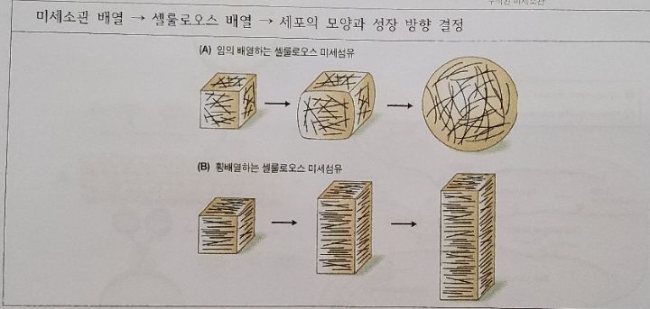 미세소관의 배열이 셀롤루오스 배열을 결정하고 따라서 세포의 모양과 성장 방향이 결정된다까지는 알겠는데
