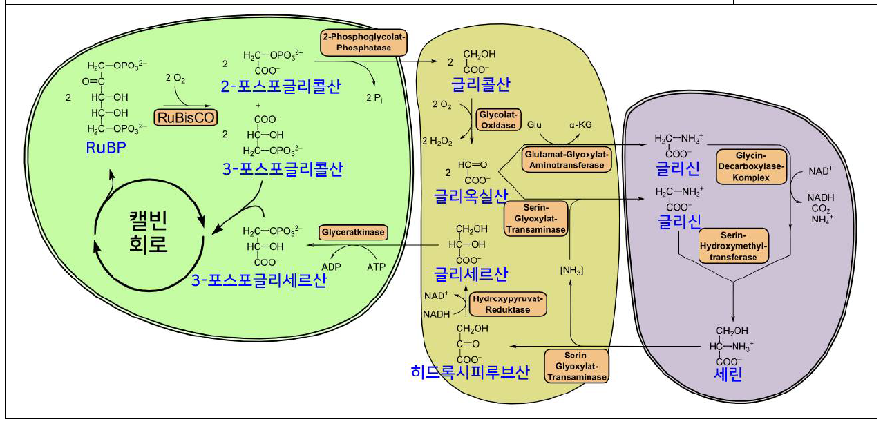 1. 캘빈-밴슨화로에서 원래 2-포스포글리콜산으로 잃어버린 탄소의 75%를 글리세르산으로 회수