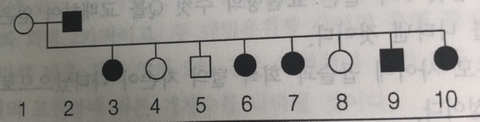 아래 가계도만 보고 유전병이 우성유전인지 열성유전인지 알 수 있나요? 알 수 있다면 방법은 무엇일까요?