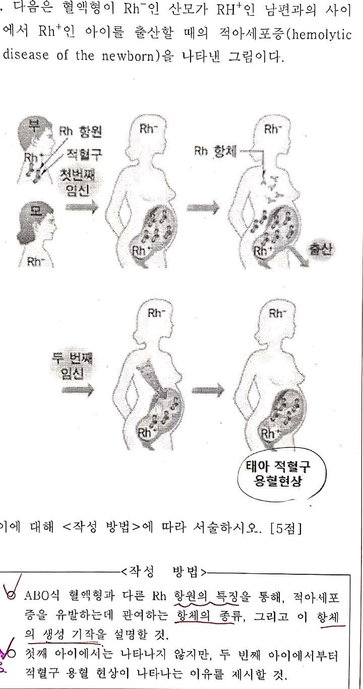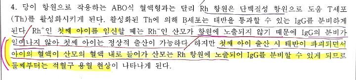 이 문제 둘째부터 용혈현상 보이는게 기억면역 때문이라는게 핵심 아닌가요?