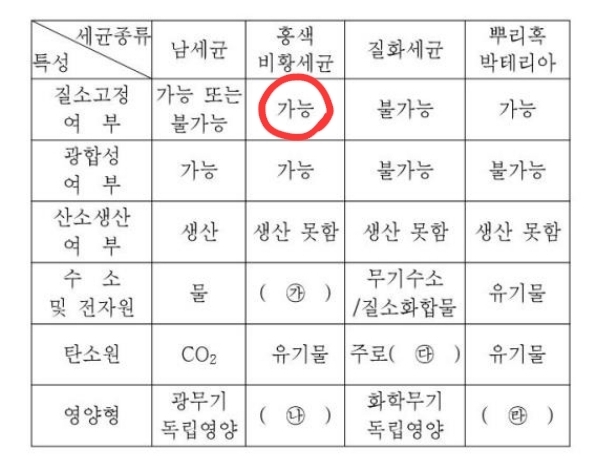 2. 임용기출에서 홍색비황세균을 질소 고정이 가능하다라고 보더라구요! 저는 뿌리혹박테리아, 아조토박터, 남세균(->이형세포)만 가능한줄 알았는데.. 홍색 비황세균도 질소고정세균에 속하는 건가요?