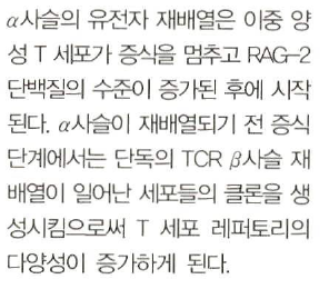 -> 알파 사슬의 재배열이 일어나 정상적인 베타 사슬에서 더 다양성을 가진 세포를 만든다!!