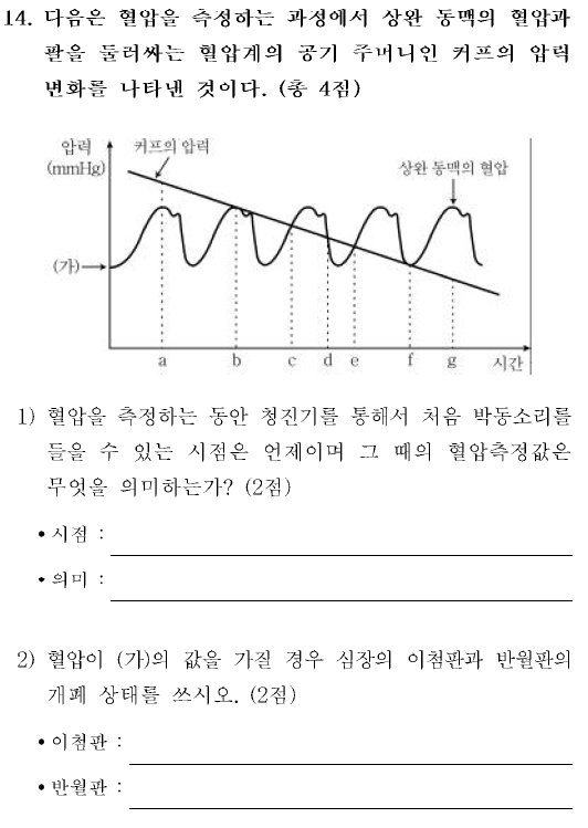 위의 2번 문제에서 상완동맥의 혈압을 재었으니 (가)상태, 즉 최저혈압에서 반월판이 닫혀있다는 것은 알겠는데요,