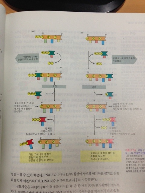 근데 5-3방향으로 중합할때(정상적인 경우)는 중합효소가 새로운 뉴클레오티드의 인산기를 분해하면서 생기는 에너지를 이용하는거 아닌가요? 원래 그게 안된다고 하기엔 무리가 있어보여서 다시 답글 남깁니다 ㅜ