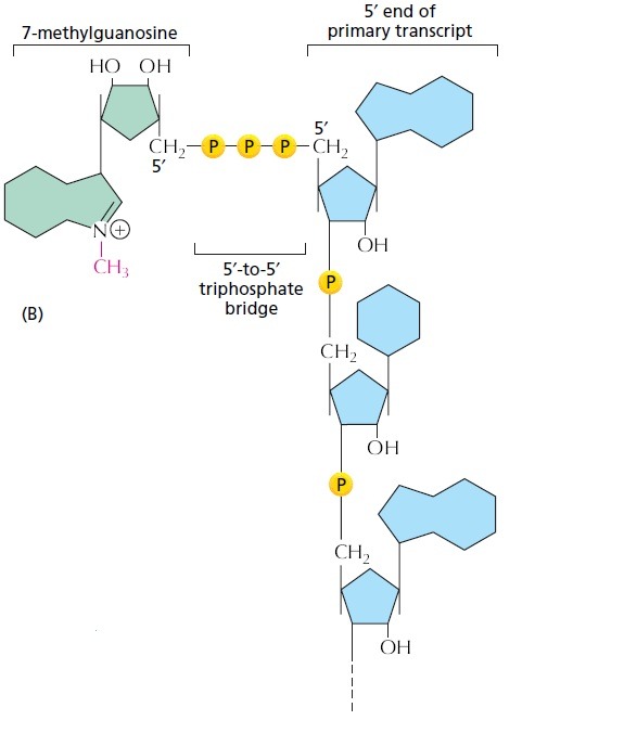이 것이 m^7G 가 됩니다. 그리고 인산기가 연속 3번 나온후 본격적인 mRNA 가 나오게 됩니다.
