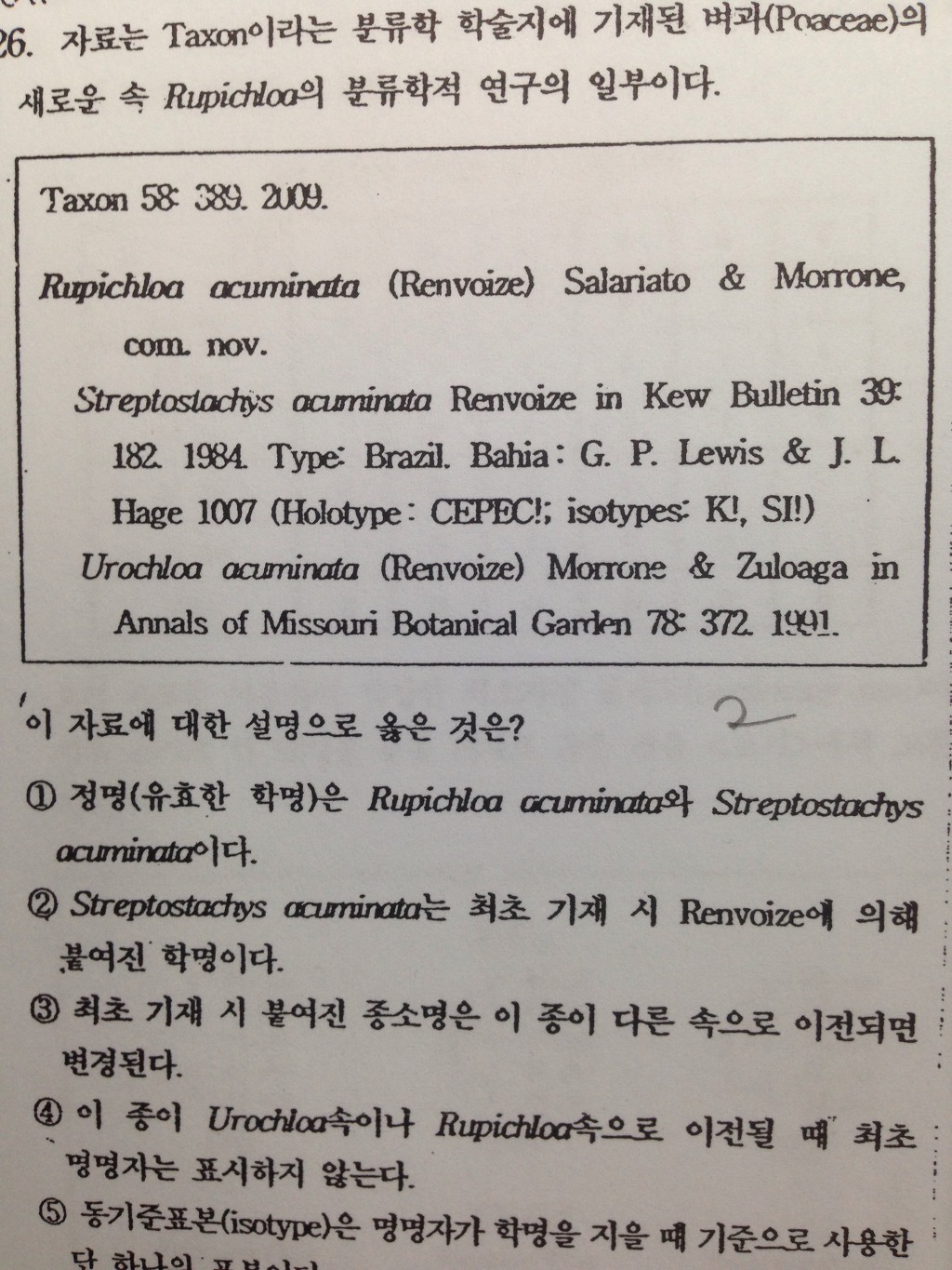 기출 11년도 26번처럼 학명이 재명명될때