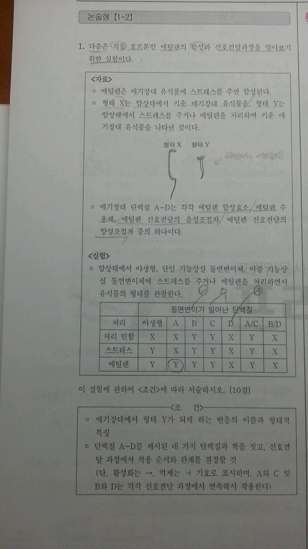 작성자이번합격생 작성시간 14.11.03 Ctr이 제 역할(제대로 활성을 가지려면)을 하기 위해서는 에틸렌수용체가 반드시 필요하지만 에틸렌 수용체의 기능이 ctr을 활성화 시킨다거나 억제 시키는 지는 아직 밝혀져 있지 않은 거 같습니다. (테이즈 식물학 5판 629page) 따라서 이 문제는 해석하기 문제가 될꺼 같습니다. ctr이 음성 조절자라면 그리고 에틸렌 수용체와 상호 작용을 한다면 총론의 해석이 그나마 설명이 됩니다. 단... 총론에서 밝히지 않은 것이 구리 보조인자를 붙여주는 ran1 단백질이 필요합니다. 이 문제와 연관해서 정확하게 표기하기는 어려울꺼 같습니다. 일단은 각론의 그림 설명으로 외우는 것이 좋겠으나 이 문제식으로 출제 된다면