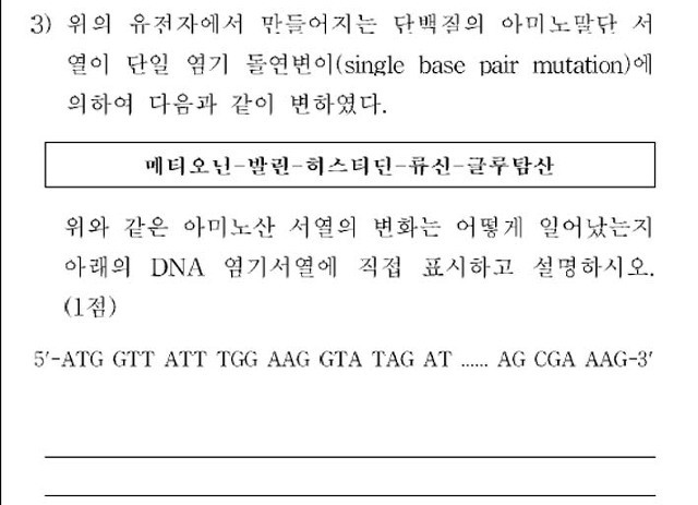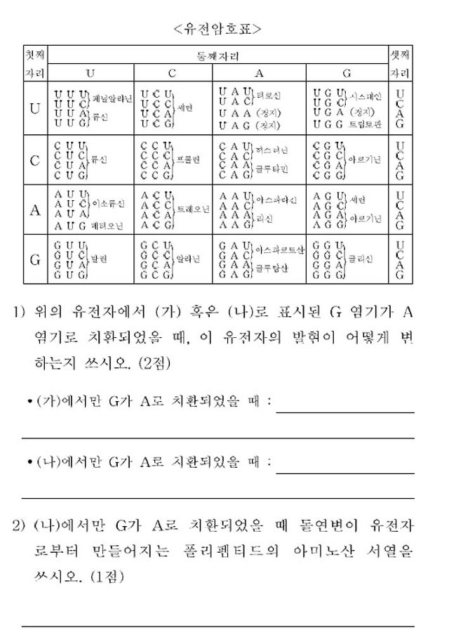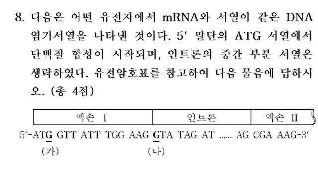 그리거 또 그러면 1번의 두번째 (나)에서만 G가 A로 치환되었을때도 어차피 인트론부분에서 바뀐거니까 최종 생성되는 폴리펩타이드에는 변화 없는거 아니에요?