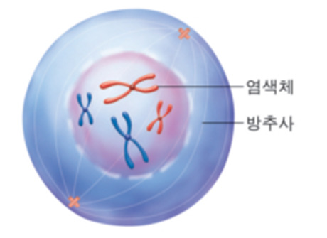 위 그림을 자세히~~~ 보시면 양쪽 중심체에서 나온 방추사가 양쪽으로 연결되어있는 모습을 볼 수 있습니다.