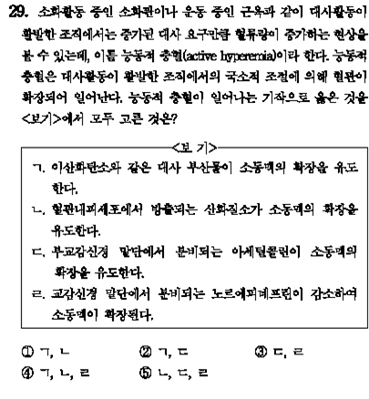 '부교감 신경 말단에서 분비되는 아세틸콜린이 소동맥의 확장을 유도한다.'라는 보기를 프라임임용해설책에서는