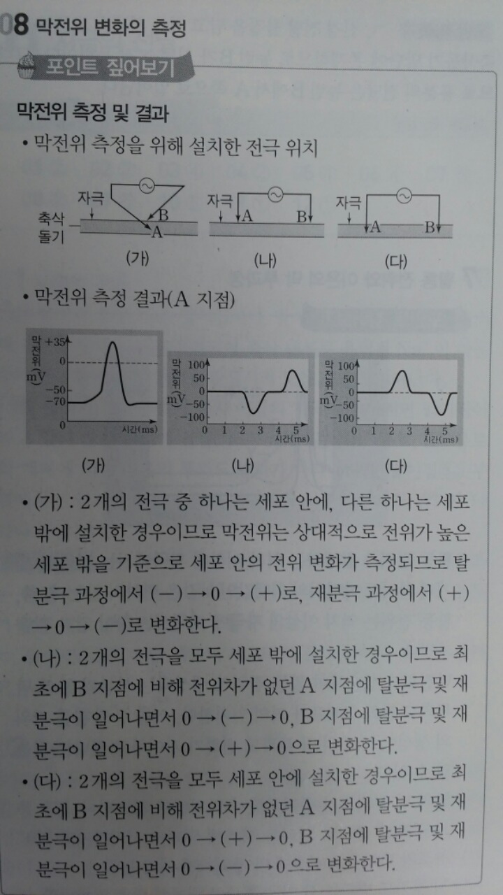 막전위 (나)와 (다) 그래프가 왜 저렇게 나타나는지 설명을 봐도 모르겠네요. ㅠㅠ 이해가 안됩니다.