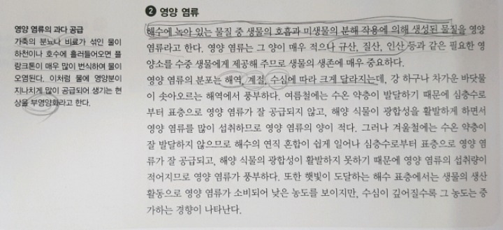 염분이 높고 용존 산소량과 플랑크톤이 적다."