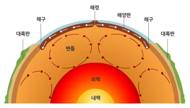 하부맨틀도 그와 비슷하게 해령부근에서 상승하고, 해구에서 하강하나요?
