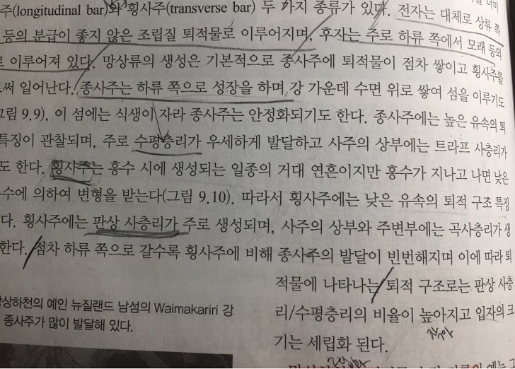 마지막 설명을 보면 하류쪽으로 갈수록 횡사주의 비해 종사주의 발달이 빈번해지며 이에 따라 퇴적물에 나타나는 퇴적구조로는
