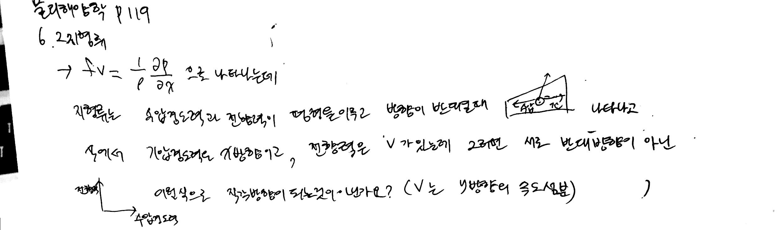 그런데 y방향 속도성분이 직각오른쪽으로 휘면 수압경도력과 같은 방향이 되는거 아닌가요??